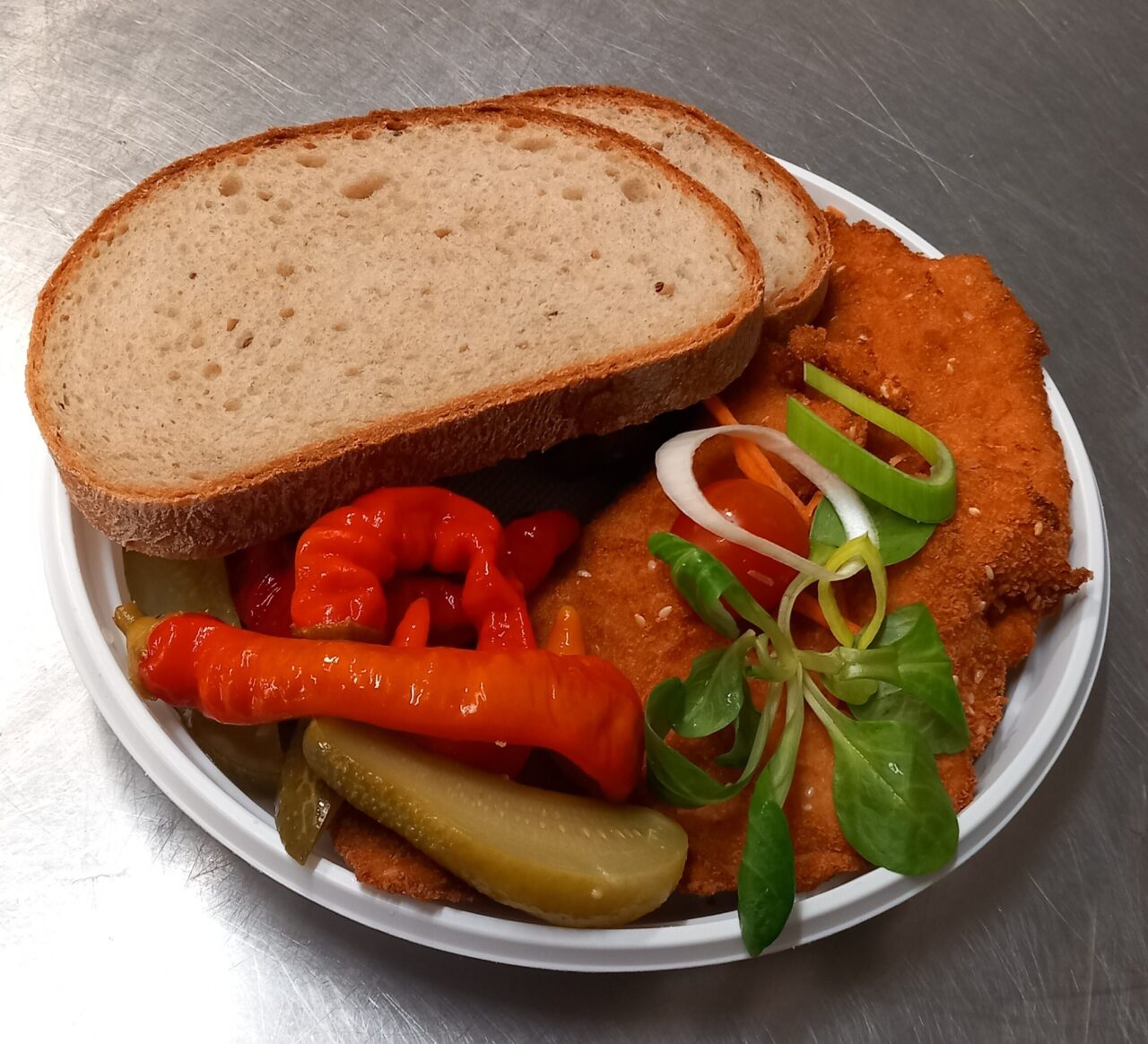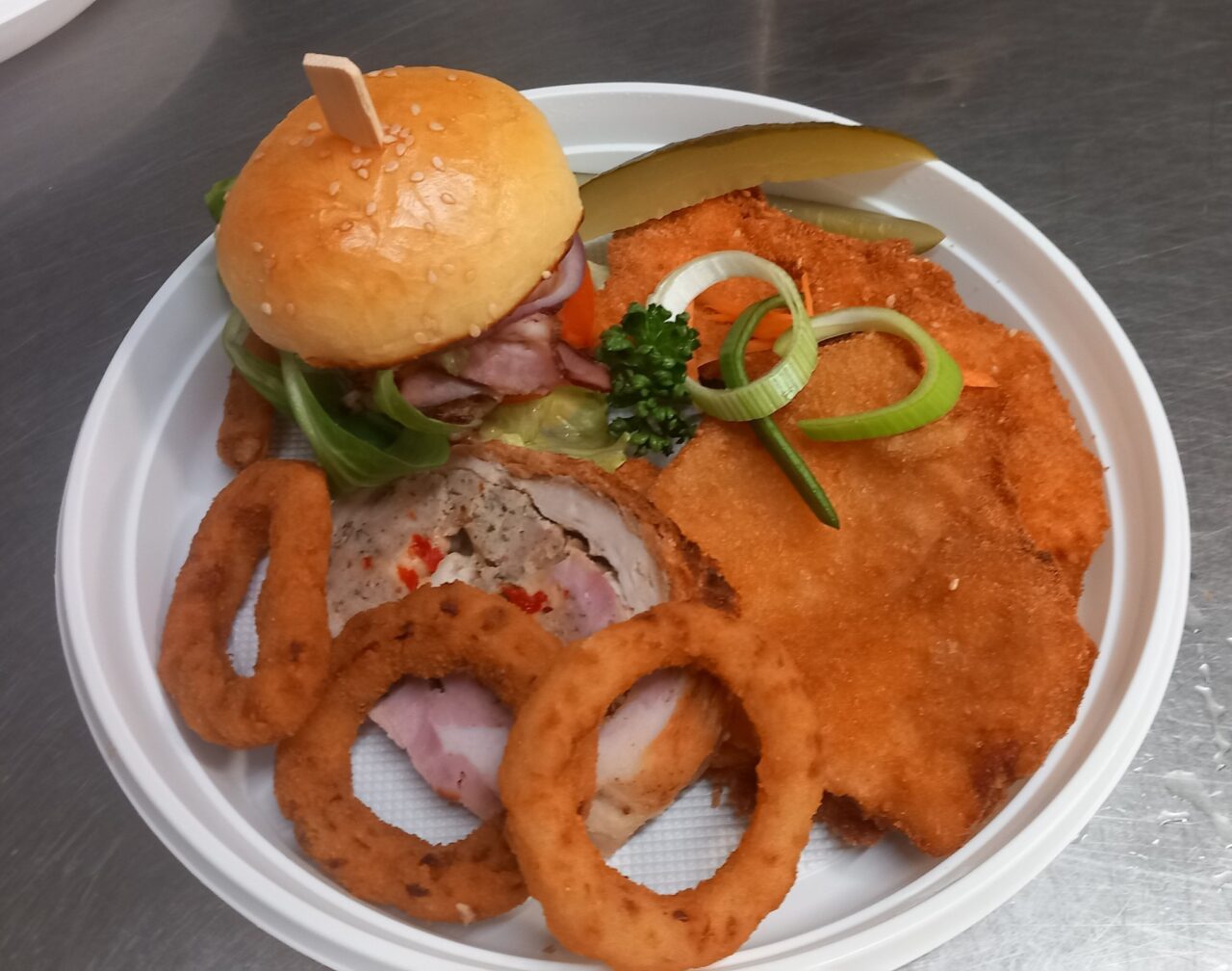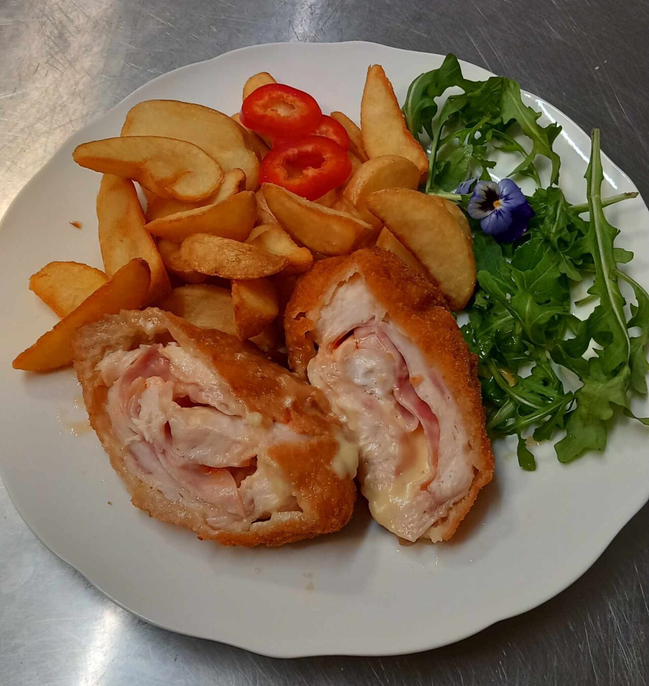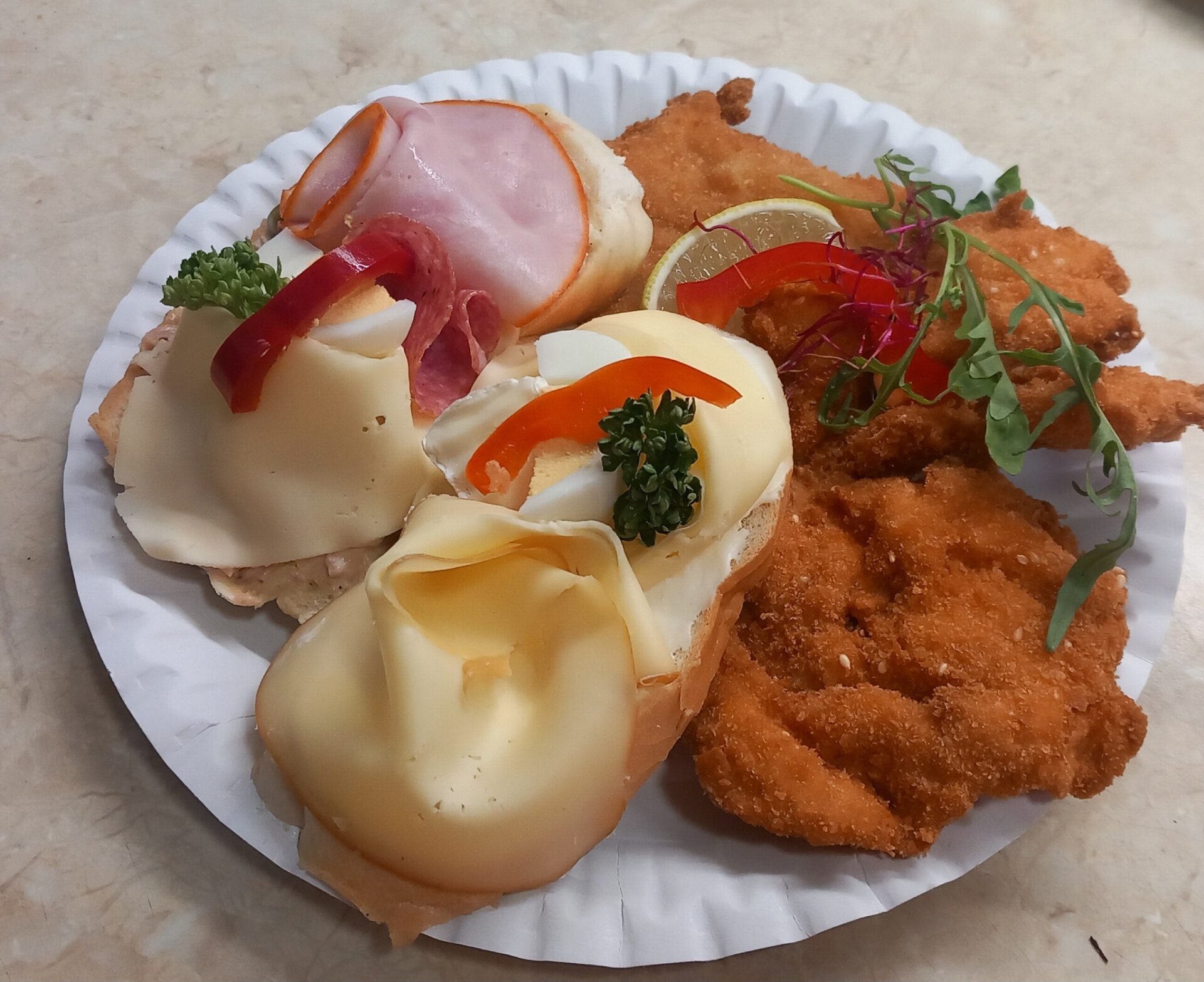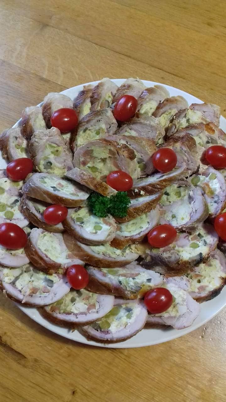 - Kuřecí plněná roláda (šunka, sýr, vaječina, zelenina)
